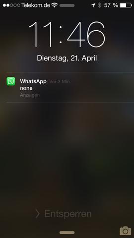 WhatsApp-Nachrichten im Sperrbildschirm anzeigen. Dort habe ich fuer whatsapp die Funktion im Sperrbildschirm anzeigen deaktiviert. Beim iPhone wird automatisch eine Push-Benachrichtigung angezeigt um dich auf eine eingehende Nachricht hinzuweisen.