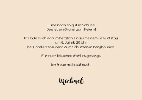 03 Einladung zum 70. Geburtstag Sind es der Dekaden sieben Und man ist recht fit geblieben Koerperlich und ueberhaupt Ist es sicherlich erlaubt Eine Feier auszurichten Ich will euch ja nicht verpflichten Doch es waere wirklich schoen Wuerden wir uns dabei sehn Autor. Wir stossen darum an mit Sekt und hoffen deine weiteren Lebensjahre sind ebenso frei und offen.